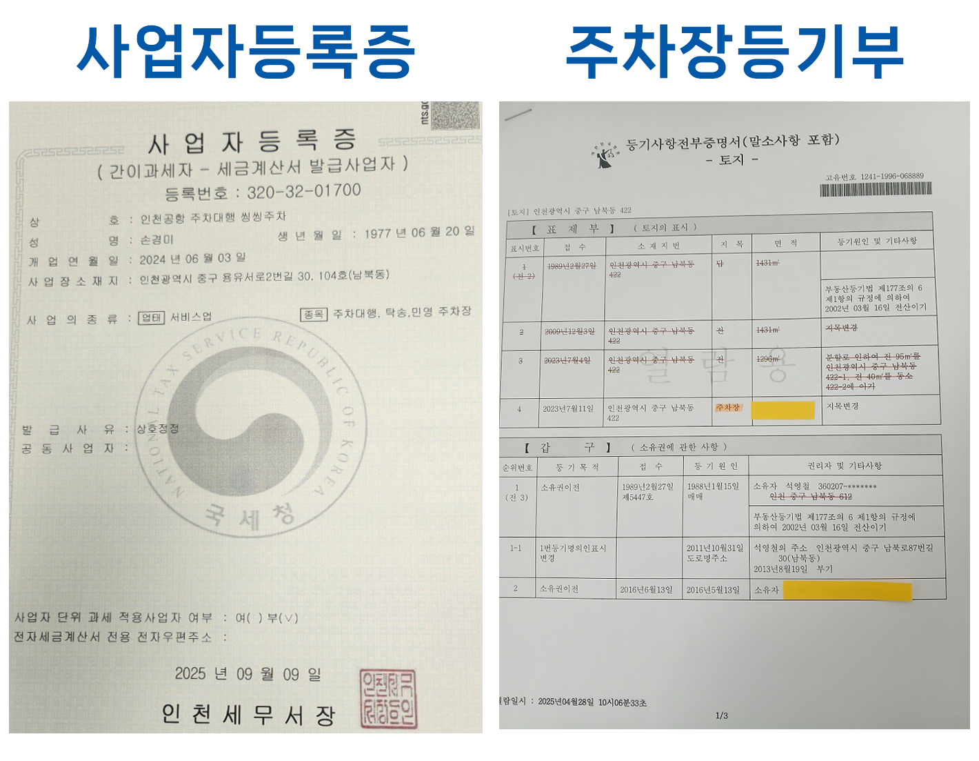 • 등록/허가 증빙서류